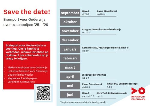 Je ontvangt deze nieuwsbrief omdat je betrokken bent bij het onderwijs in Brainport Eindhoven. Ken je iemand die ook interesse heeft in deze nieuwsbrief stuur deze dan gerust door, aanmelden voor deze nieuwsbrief kan via deze link.