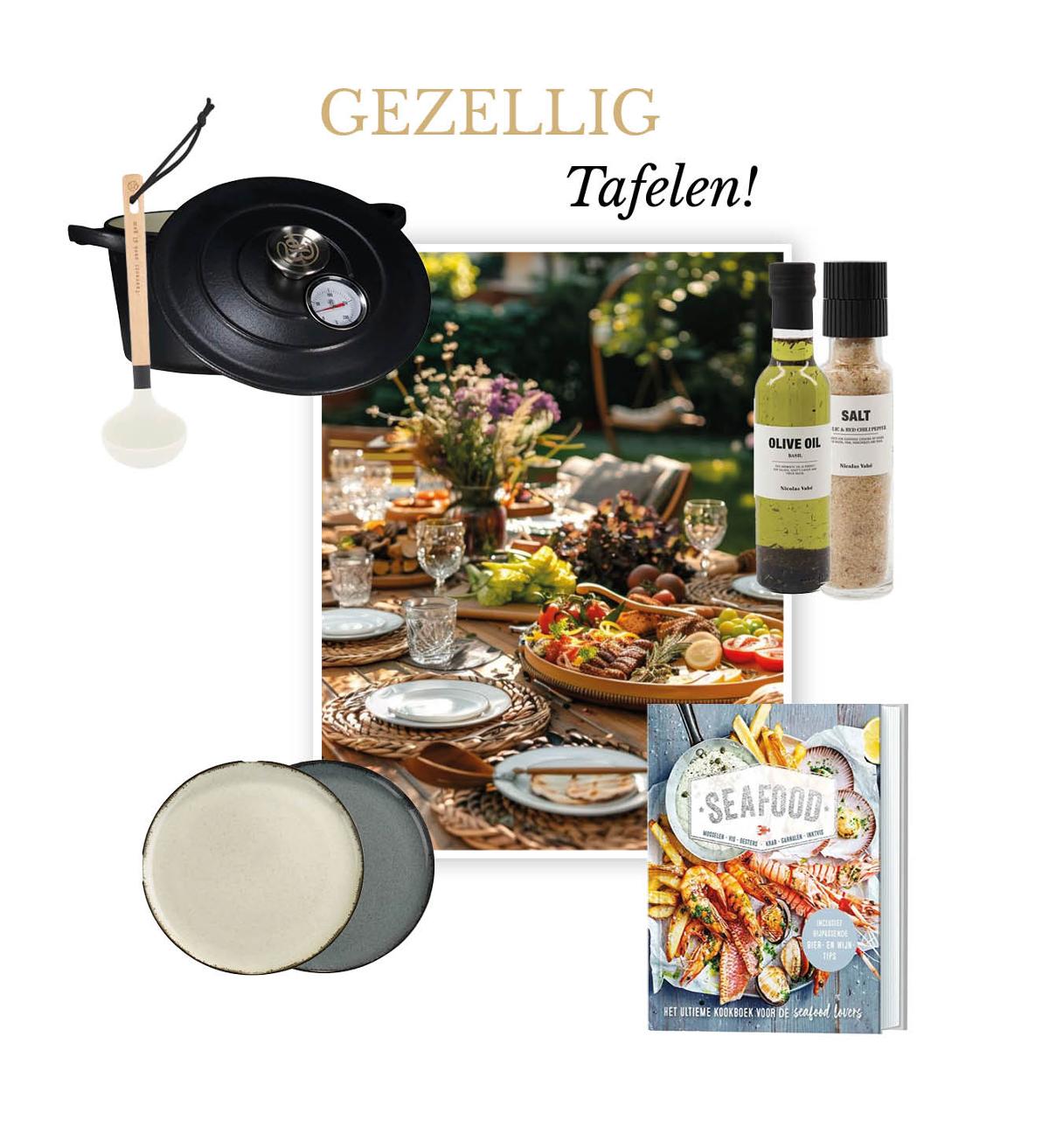 Gezellig tafelen begint bij een mooi gedekte tafel met fijne borden, een goed kookboek binnen handbereik en de geur van een heerlijk gerecht in de lucht. Samen koken en kletsen maakt het moment compleet. Met de lentezon in je tuin wordt buiten eten weer een echt genietmoment! |