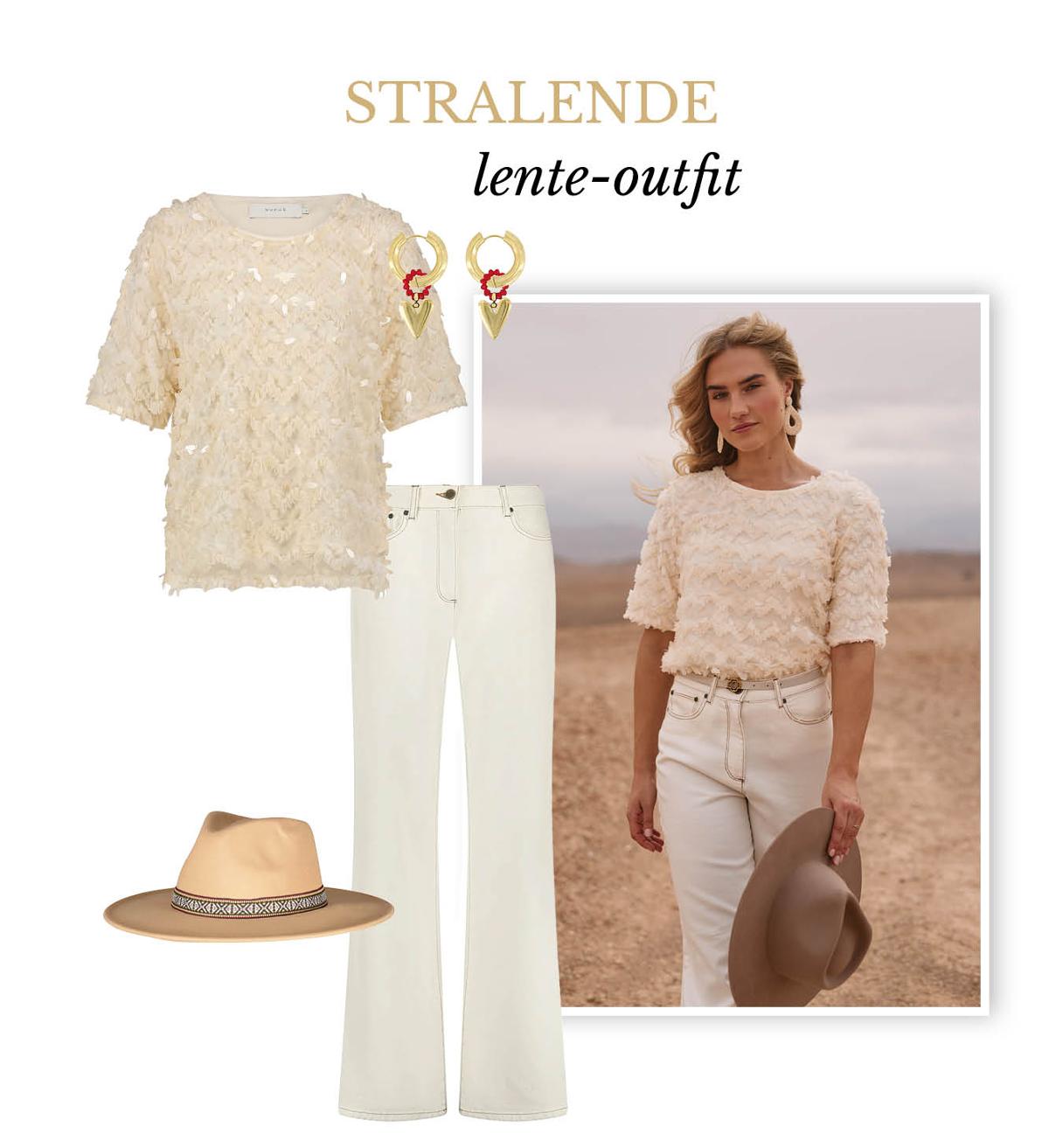 Fris, stijlvol en perfect voor het voorjaar. Deze look bestaat uit items uit de nieuwste collectie van Nukus. De lichte tinten en verfijnde details zorgen voor een moeiteloze en elegante uitstraling. Maak de outfit af met een stoere cowboyhoed voor de eerste zonnestralen. |