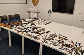 Tussen 7 en 13 oktober 2024 was een (vuur)wapeninleveractie in de gemeente Zaanstad. Tijdens deze week konden inwoners hun steek-stoot of slagwapen inleveren op het politiebureau, Guishof 1 in Zaandijk. Op het politiebureau in Zaandijk stond een ton, waarin messen, slag –en stootwapens gegooid konden worden. Meer dan honderd wapens zijn ingeleverd. De opbrengst bestond onder andere uit luchtbuksen, kruisbogen, zakmessen, machetes, busjes pepperspray, dolken en keukenmessen. |