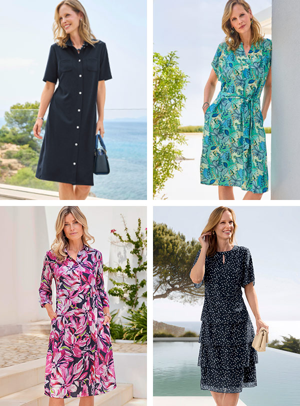 Imprimés feuilles légers et aériens, pois féminins ou modèles boutonnés à l’allure sport : ces robes sont idéales pour les journées d’été chaudes et ensoleillées !