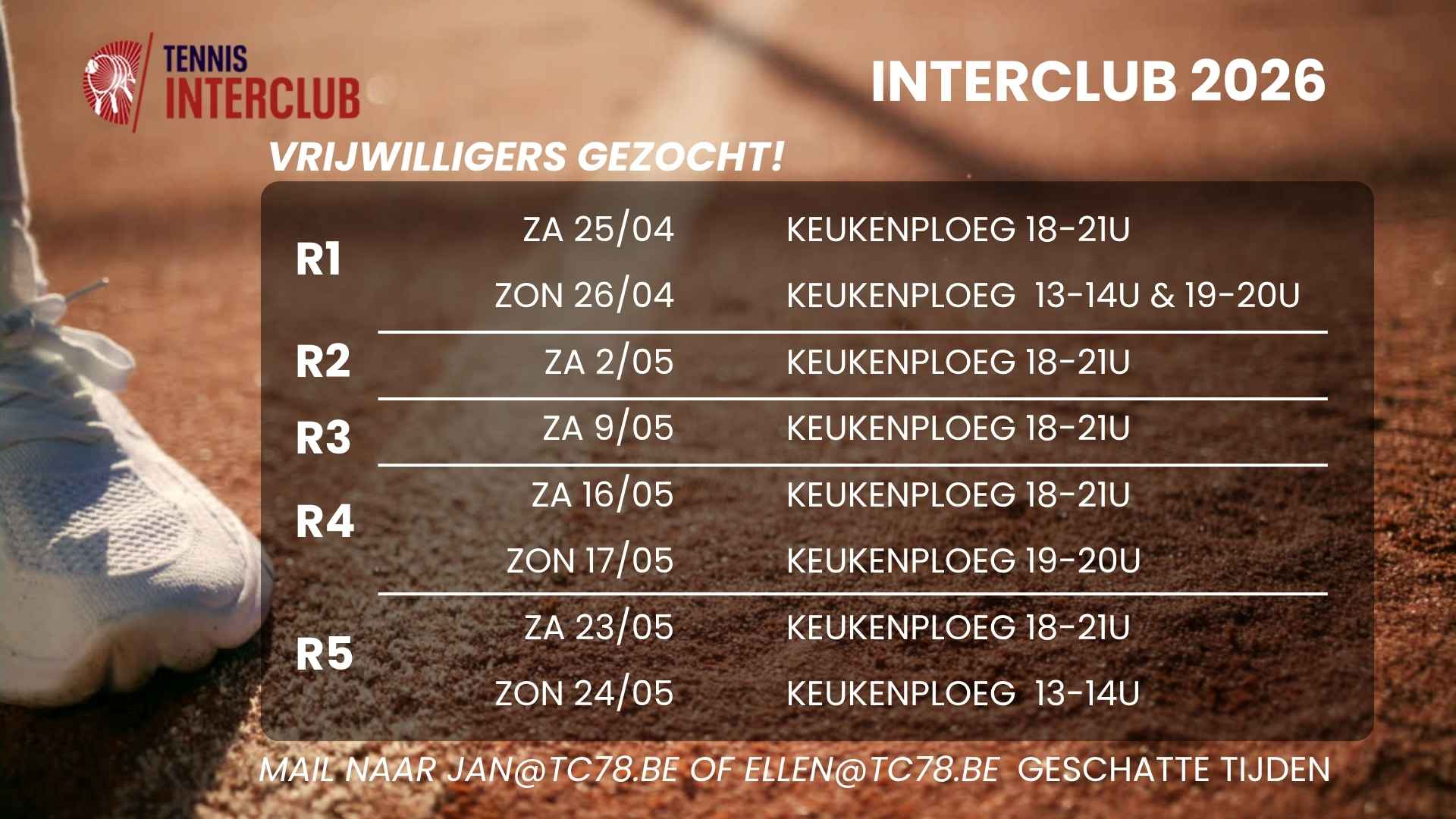 Laat het ons snel weten via jan@tc78.be of ellen@tc78.be.