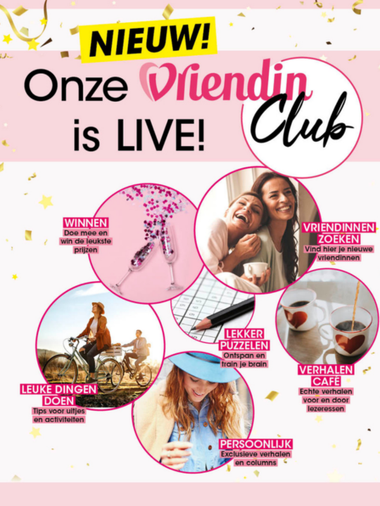Sluit je nu aan bij de Vriendin Club en krijg (nog t/m maandag 5 januari 2026) de eerste maand gratis toegang. Daarna betaal je slechts € 3,95 per maand (maandelijks opzegbaar). En extra ontvang je óók nog een digitaal Mini Bookazine met een feelgoodverhaal cadeau! Kom erbij, lees mee of praat mee wanneer jij wil.