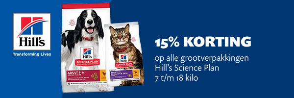 Met de grootverpakkingen van Hill's Science Plan voor hond en kat haal je vertrouwde voeding in huis met 15% voordeel. Ideaal als jouw dier al helemaal gewend is aan zijn favoriete brokken of als je graag in één keer voordelig inslaat. Zo zorg je voor gemak, kwaliteit en een fijne voorraad in huis voor jouw hond of kat.