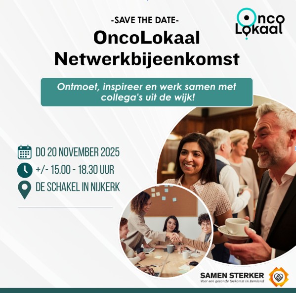 | Het duurt nog even, maar zet hem alvast in je agenda: donderdag 20 november verwachten we een nieuwe OncoLokaal netwerkbijeenkomst te organiseren. Ben jij erbij? Meer informatie volgt. |