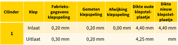 Helaas, dit is niet het juiste antwoord. Het juiste antwoord is: Voelermaatjes, schroefmaat en gereedschap om de nokkenas te demonteren